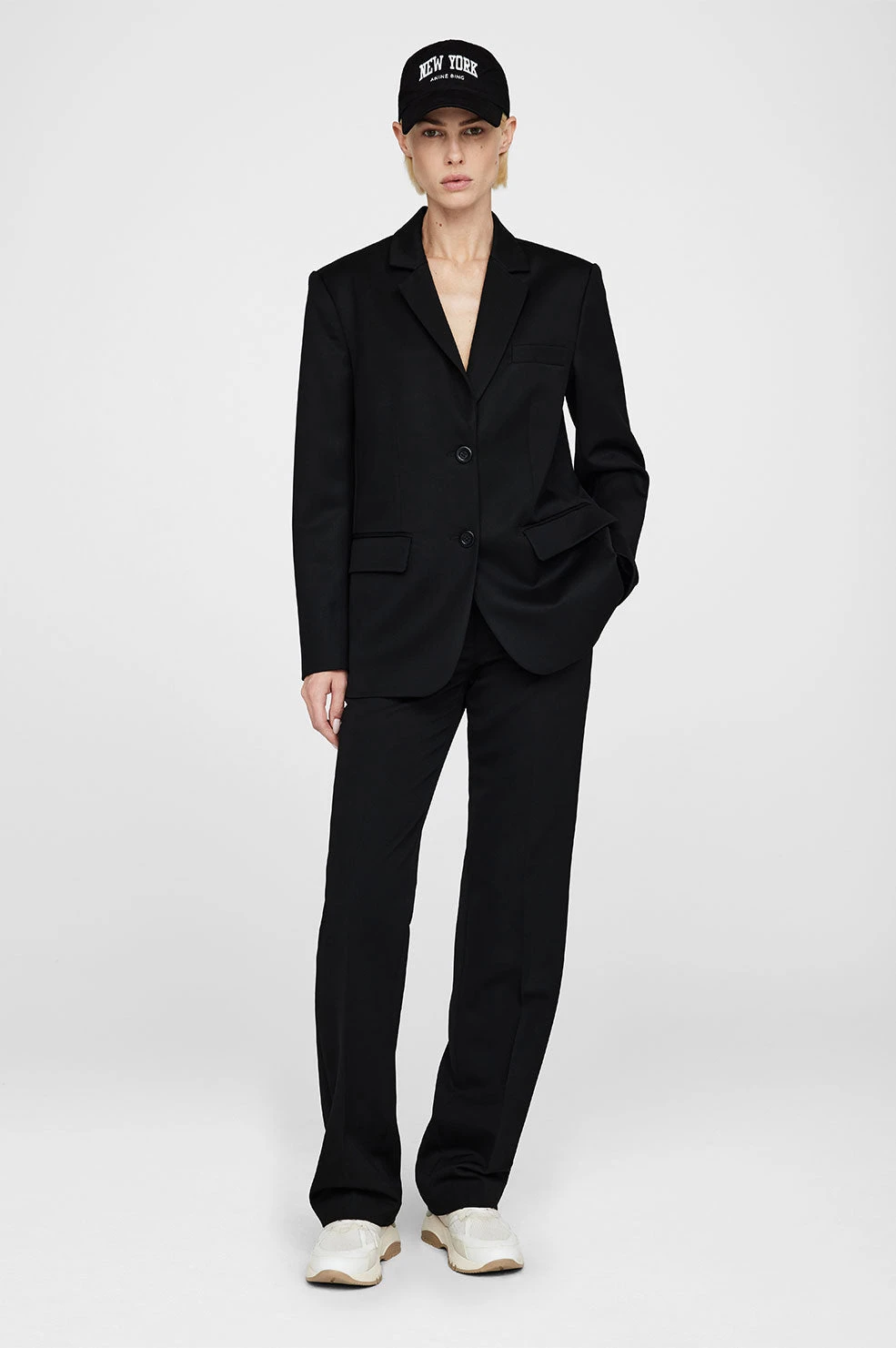 The Anine Bing Jeremy Baseball Cap University New York in Black will be your favourite on-the-go accessory. Featuring an adjustable cotton twill hat, with ivory stitched embroidery displaying collegiate lettering at the centre front.