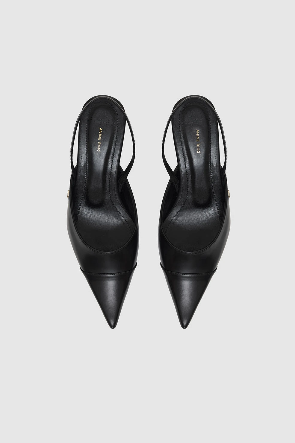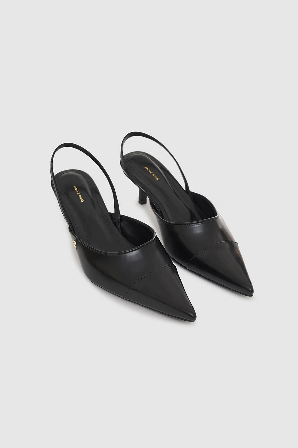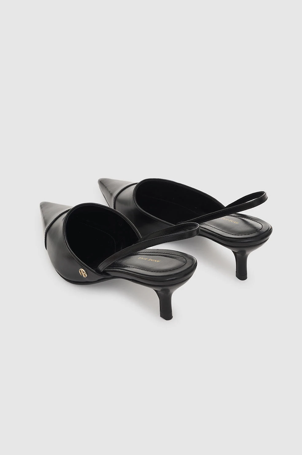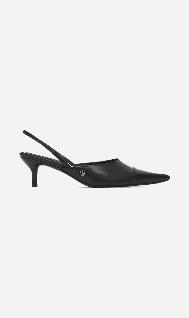A sophisticated kitten heel crafted in timeless smoothe leather, the Willa Slingback Heel by Anine Bing is a take on the traditional slingback style and features a toe cap and dainty ankle strap with hidden elastic detailing for a secure and comfortable fit. Accented with an ANINE BING monogram in gold-tone hardware. Pair with loose-leg denim for the ultimate in laidback yet elevated style.