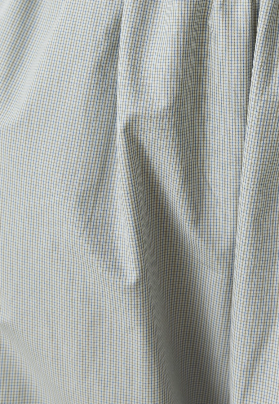 The release tuck set by Deiji Studios in off-white and court check is a beautiful set for the summer months. Including a crisp button down raglan sleeved shirt with tucks at the neck for a voluminous silhouette, roomy full-length sleeves, an elastic cuff for adjustable length, a curved hem and tie back feature which pairs back neatly with a contrasting soft elastic high waist short with front tucks and side seam pockets. Wear as a set or separately.