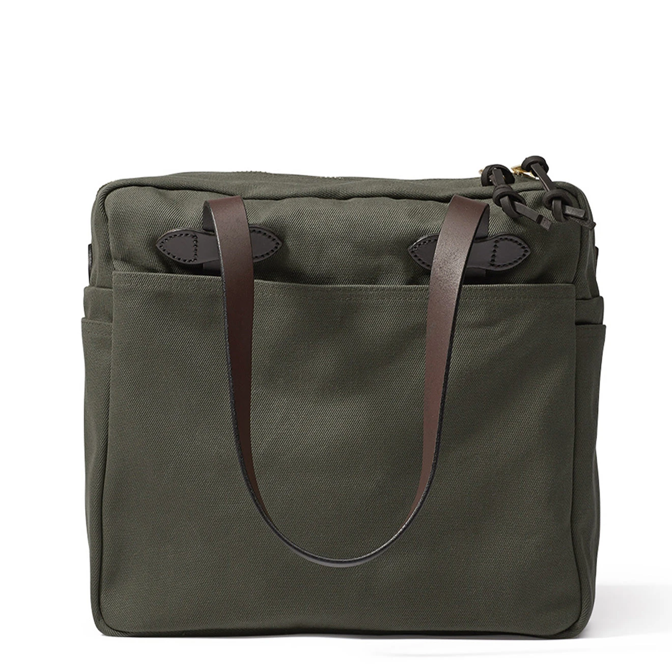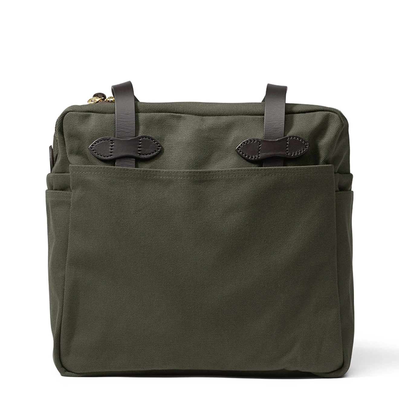 The Filson Tote Bag With Zipper Sepia is perfect for everyday use as the bag is weather-resistant, increasing the durability. Crafted from 100% cotton Rugged Twill, the signature Filson Bridle Leather for the handles and a Rustproof Brass Zipper to secure the Tote bag closed. The main compartment is roomy providing enough room for your daily gear. In addition, four external pockets for your smaller items which need to be in order, keeping you organised.