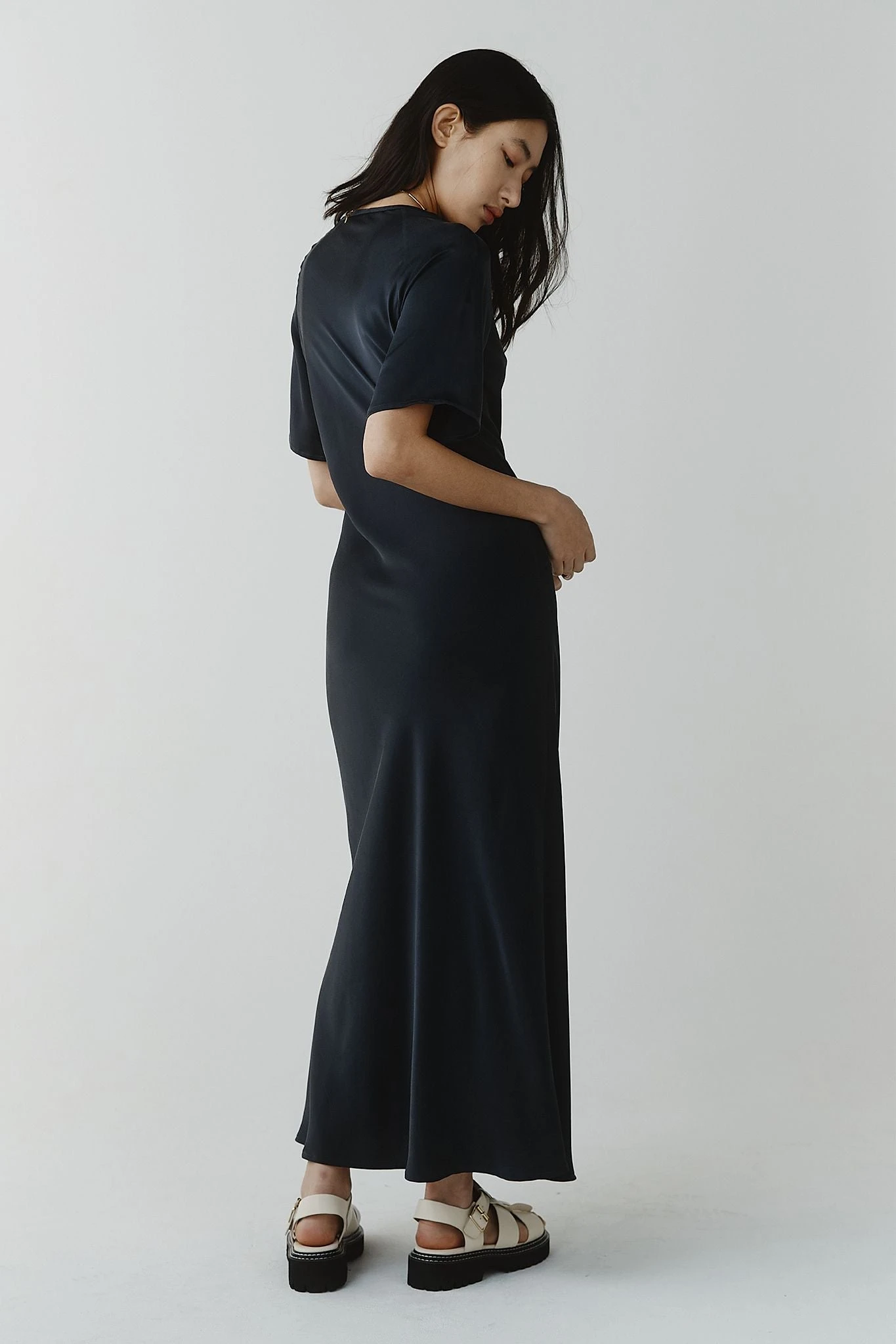 The Marle Abigail Dress in Fjord is a full-length silk dress built upon the adored Norton Tee. It is crafted in 100% Oeko-Tex certified sand-washed silk and features a round neckline and raglan sleeve that falls at a flattering, elongated length. This is a full-length dress, cut on the bias, designed to perfectly skim over your body.