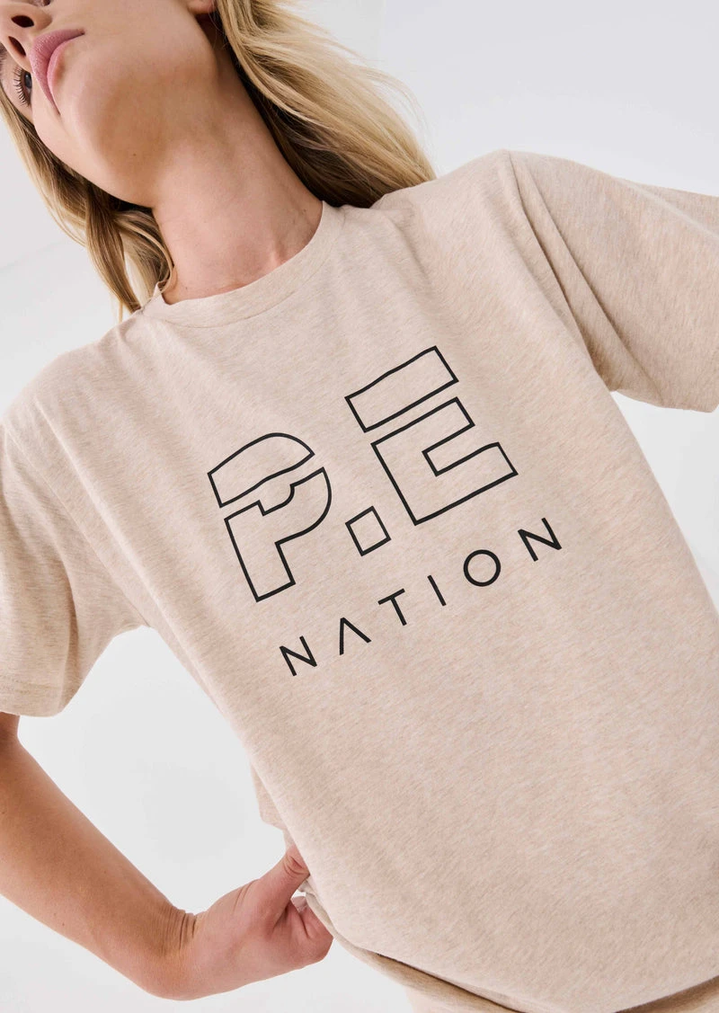 The PE Nation Heads Up Tee in Warm Grey Marl comes as part of the brands Ready. To Wear Collection, created for who you are. Engineered for what you do. An everyday go-to, this heritage P.E Nation tee can be worn in a multitude of ways; a perfect addition to everyday and active fits. A classic crew neck silhouette, available in extended sizing, the Heads Up Tee is cut from ultra-soft lightweight sustainable fabrication, with a contrast P.E Nation logo print centre front. Work it into your day to day looks with favourites from your P.E collection. Team it up with the Shozo Legging, Reframe Bike Short, Rewind Bike Short and Reformer Legging from this collection.